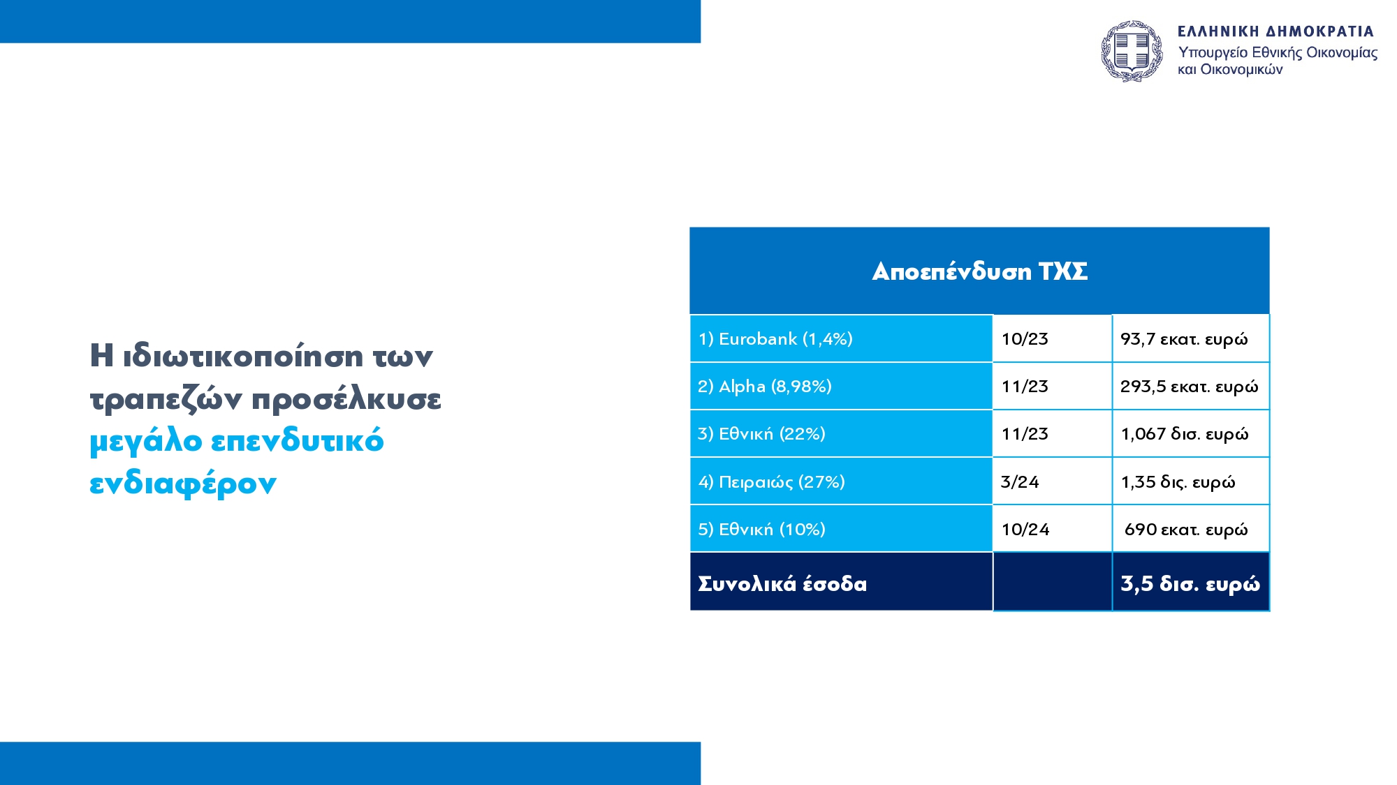 - Ενισχύθηκε η δραστηριότητα της Ελληνικής Αναπτυξιακής Τράπεζας για την χρηματοδότηση μικρομεσαίων επιχειρήσεων.
