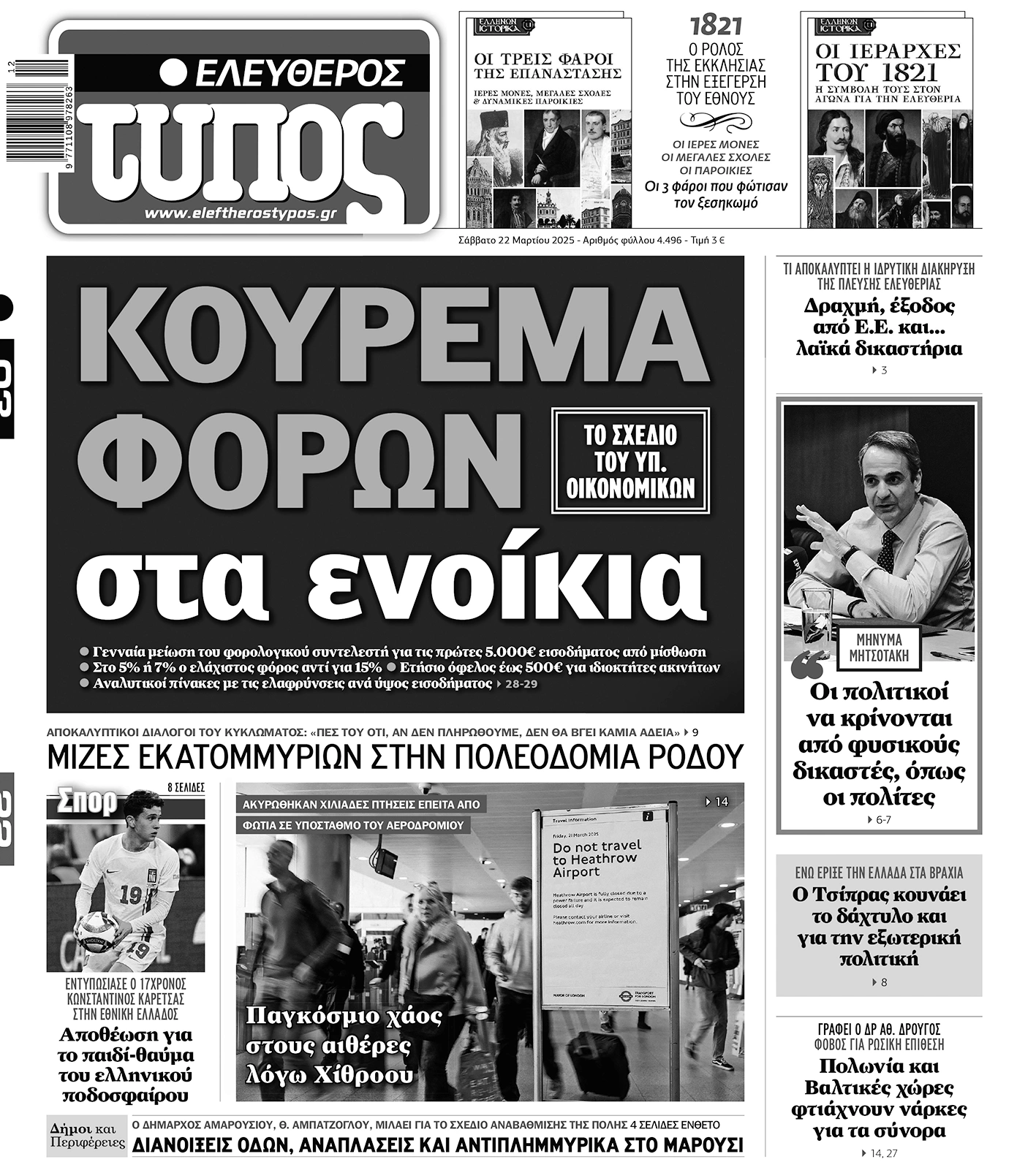 Ερωτηθείς ειδικότερα για τις πληροφορίες περί μείωσης του συντελεστή φορολογίας στα εισοδήματα από ενοίκια μέχρι 5.000 ευρώ – που πρώτος αποκάλυψε ο «Ε.Τ.» από τις 22 Μαρτίου με αποκλειστικό πρωτοσέλιδο δημοσίευμά του – δεν απέκλεισε το ενδεχόμενο υιοθέτησης αυτού του μέτρου. Τόνισε, συγκεκριμένα, ότι: «Η γενική κατεύθυνση της ΔΕΘ είναι αφαίρεση βαρών από τη μεσαία τάξη. Αφαίρεση βαρών δε και από το εισόδημα της μεσαίας τάξης». Ουσιαστικά έδειξε ότι οι προθέσεις της κυβέρνησης κινούνται προς αυτή την κατεύθυνση, αλλά απέφυγε να το ομολογήσει ευθέως παραπέμποντας στις επίσημες ανακοινώσεις του πρωθυπουργού τον Σεπτέμβριο.