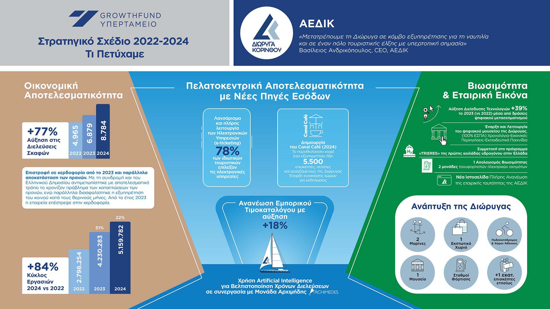 Ο Διευθύνων Σύμβουλος του Υπερταμείου/Growthfund, Γρηγόρης Δ. Δημητριάδης, δήλωσε χαρακτηριστικά: «Για την τριετία 2022-2024 στρατηγική μας απόφαση ήταν να μετατρέψουμε το Growthfund από έναν αποστασιοποημένο μέτοχο σε ένα μεταρρυθμιστικό εθνικό επενδυτικό ταμείο, συμμετέχοντας ενεργά στις θυγατρικές μας. Ενισχύσαμε περαιτέρω τη διακυβέρνηση των θυγατρικών μας, βελτιώσαμε την αποδοτικότητα τους σε συνεργασία με τις διοικήσεις μας και θέσαμε τα θεμέλια για τη μετατροπή μας στο Sovereign Wealth Fund (SWF) της χώρας. Στις προτεραιότητες του 2025 είναι ο μετασχηματισμός του Growthfund μέσω της απορρόφησης του ΤΑΙΠΕΔ και του ΤΧΣ, ενώ ταυτόχρονα ολοκληρώνεται η δημιουργία του νέου Επενδυτικού Ταμείου, μέσω του οποίου αναμένεται να κινητοποιηθούν πρόσθετες ιδιωτικές επενδύσεις, ευθυγραμμιζόμενες με τις εθνικές στρατηγικές προτεραιότητες».