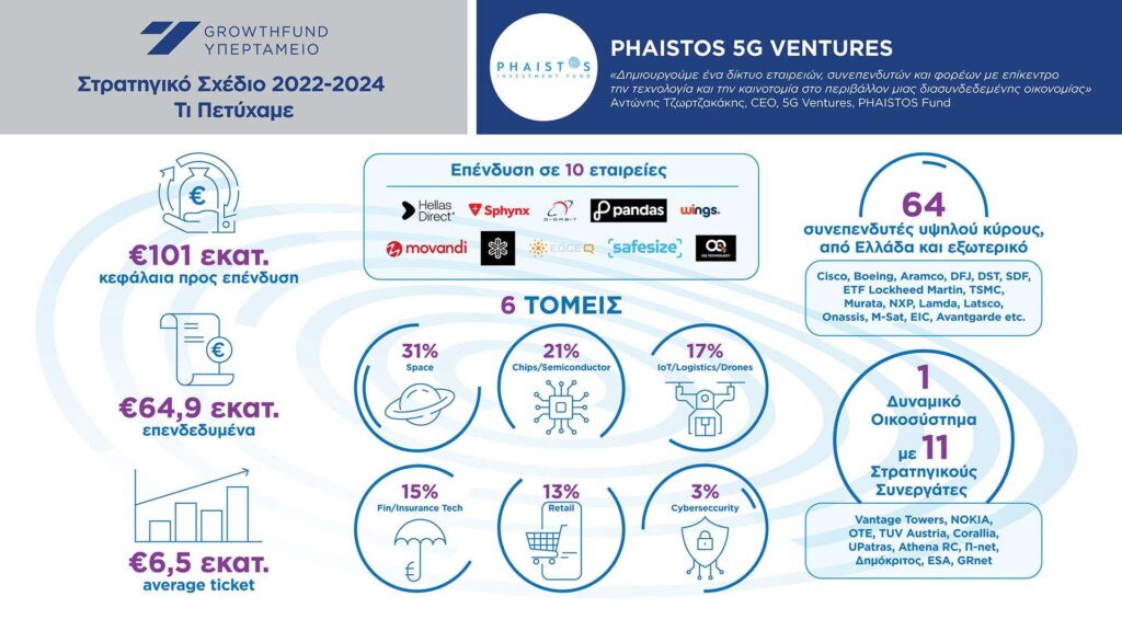 Στο Στρατηγικό σχέδιο 2025-2027 – που τελεί υπό έγκριση από το Υπουργείο Εθνικής Οικονομίας και Οικονομικών – παραμένει ως βασική αποστολή του Growthfund η μεγιστοποίηση της αξίας και του κοινωνικού αποτυπώματος του χαρτοφυλακίου του. Στην πράξη περιλαμβάνει: