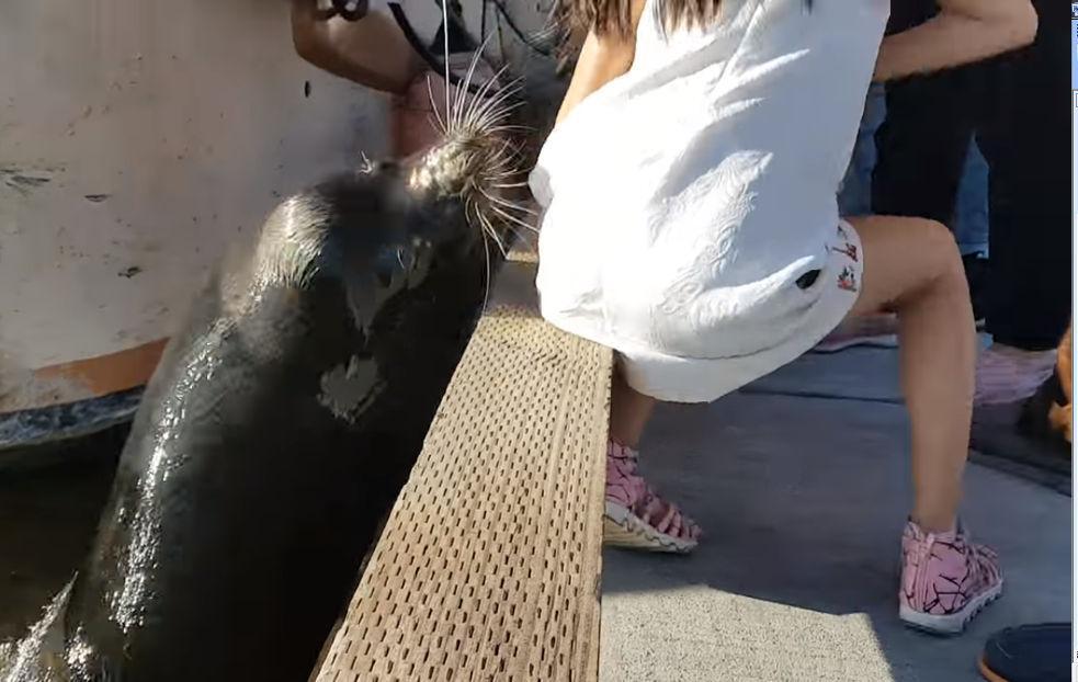 Το μικρό κορίτσι που βρισκόταν στον προβλήτα έπαιζε με το θαλάσσιο λιοντάρι βλέποντας το να αναζητά τροφή.