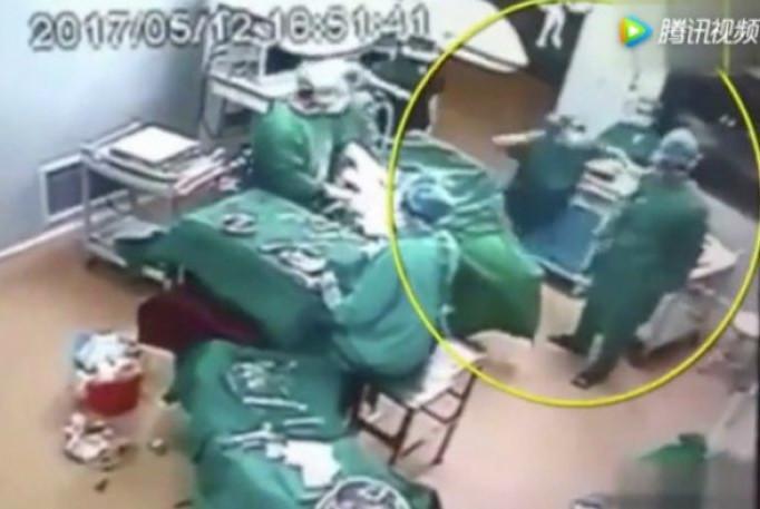 Μια γυναίκα νοσοκόμος χτυπάει τον άνδρα συνεργάτη της, πριν αυτός «απαντήσει» στο χτύπημα, «ξαπλώνοντάς» την στο έδαφος.