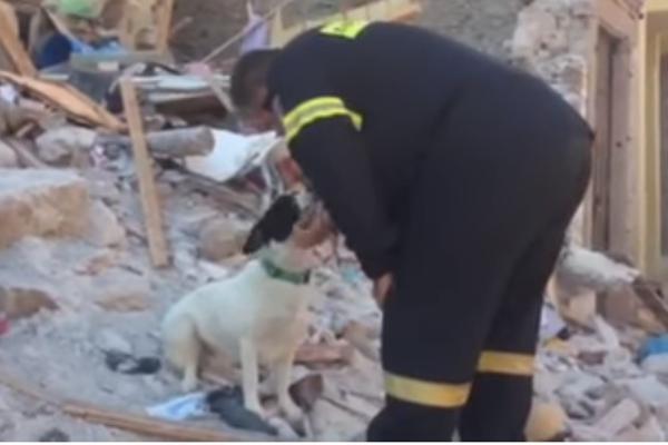 Το ένα σκυλί είναι αυτό της 43χρονης άτυχης γυναίκας που σκοτώθηκε εκείνο το μεσημέρι. Έσκαβε με τα πόδια του στα ερείπια προσπαθώντας να ξεθάψει τη φίλη του. Αλλά και μετά την εύρεση της σορού, έμεινε εκεί στα ερείπια επί ώρες κλαίγοντας μέχρι που το απομάκρυναν και το μετέφεραν σε χώρο φιλοξενίας ζώων άνδρες της Πυροσβεστικής Υπηρεσίας.
