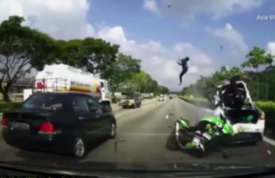 Το τρομακτικό τροχαίο σημειώθηκε στη λεωφόρο Seletar Expressway στη Σιγκαπούρη, με τον οδηγό και τον συνοδηγό να νοσηλεύονται στο νοσοκομείο. Ο οδηγός προσπάθησε να προσπεράσει αυτοκίνητο αλλά δεν πρόλαβε να αντιδράσει όταν στην πορεία του βρέθηκε ένα ακινητοποιημένο όχημα, με αποτέλεσμα να καρφωθεί πάνω του.