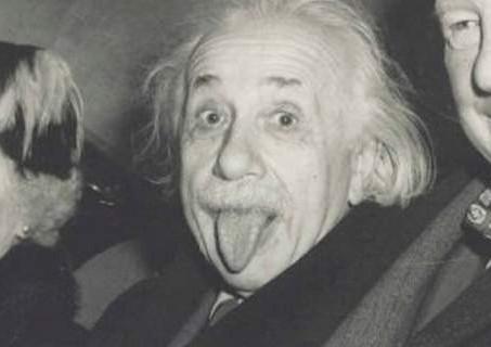 Μια ομάδα φωτογράφων προσπάθησαν να πείσουν τον Αϊνστάιν να ποζάρει για μια φωτογραφία, καθώς έφευγε από το πάρτι, και αυτός τους «αποζημίωσε» με μια αστεία πόζα. Την φωτογραφία τράβηξε ο φωτογράφος ‘Αρθουρ Σας του πρακτορείου ειδήσεων UPI.