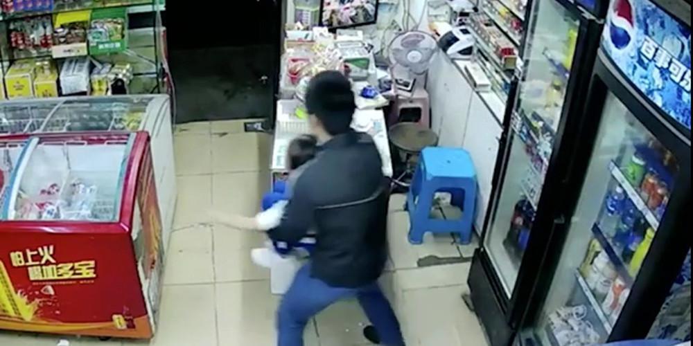 Η μικρούλα έζησε δραματικές στιγμές και προσπάθησε να «γαντζώσει» τα πόδια της στην πόρτα για να αποτρέψει τον άντρα να την απομακρύνει από το μαγαζί, αλλά δυστυχώς, δεν τα κατάφερε.