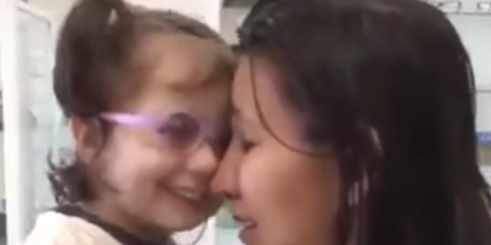 Το κοριτσάκι φαίνεται «χαμένο» μέχρι να μπορέσει να επεξεργαστεί τον κόσμο που βλέπει για πρώτη φορά ενώ η μαμά της την βουτάει σφιχτά στην αγκαλιά της και της δίνει πολλά φιλιά, ευχαριστώντας το Θεό για αυτό το θαύμα.