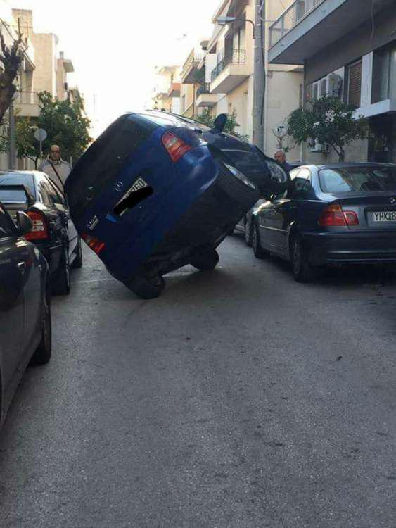 Το περιστατικό συνέβη σε ένα στενό δρόμο του δήμου Δάφνης- Υμηττού με όσους πέρασαν από εκεί να αναρωτιούνται πως κατάφερε ο οδηγός της Mercedes να πέσει πάνω στην BMW με αυτόν τον τρόπο.