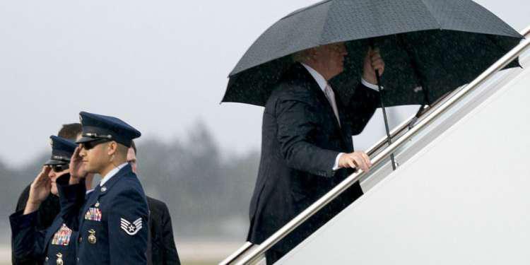 Ο Αμερικανός πρόεδρος άφησε τη γυναίκα και τον μικρό του γιο να βραχούν και κράτησε για τον εαυτό του μία τεράστια ομπρέλα!