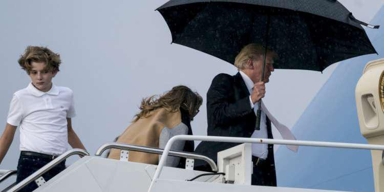 Ο Ντόναλντ Τραμπ μαζί με την σύζυγό του και τον 11χρονο Μπάρον επιβιβάστηκαν στο Air Force One για να αναχωρήσουν από το θέρετρο στο οποίο έχουν ένα εξοχικό.