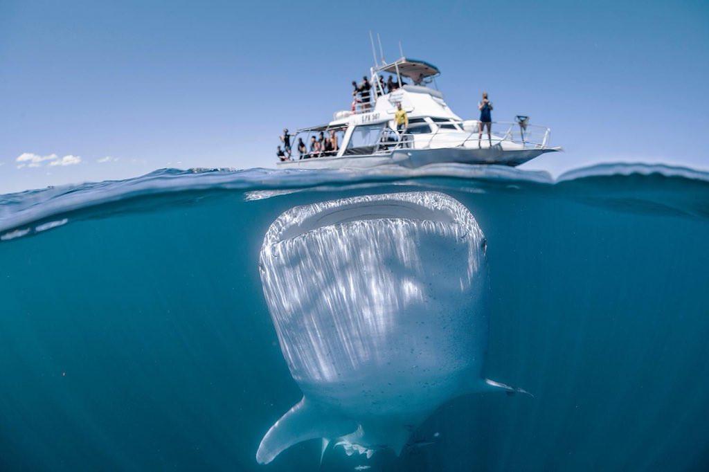 «Η εικόνα τραβήχτηκε περίπου 6 χιλιόμετρα από την ακτή στο πίσω μέρος του κοραλλιογενή κόλπου Νίνγκαλο Δεν φοβήθηκα, κολυμπάω συχνά δίπλα τους, αλλά πάντα διατηρώ μια απόσταση ασφαλείας. Είναι ένα πολύ υπάκουο ψάρι και συχνά αποφεύγει οτιδήποτε όταν αισθανθεί ότι απειλείται».
