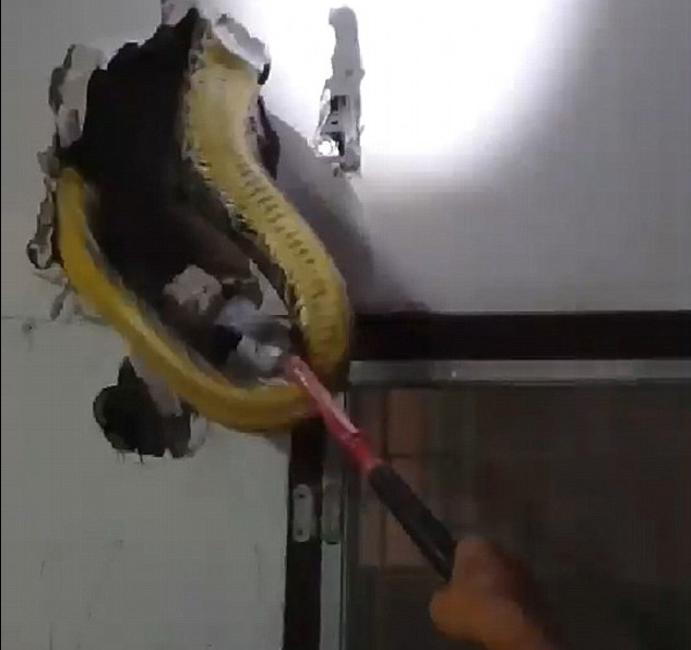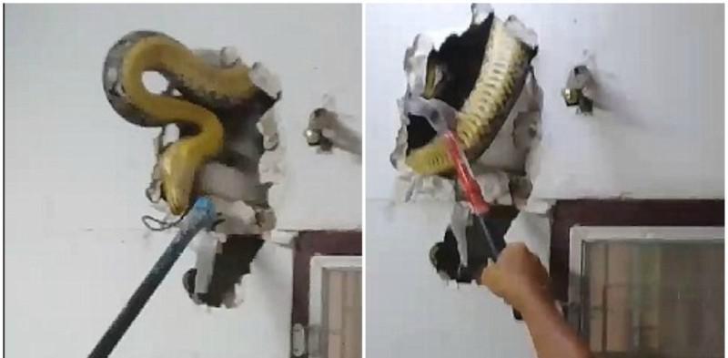 Αμέσως, ο τρομοκρατημένος Ταϋλανδός κάλεσε την ειδική υπηρεσία αιχμαλωσίας φιδιών της Μπανγκόγκ, με το συνεργείο να παλεύει για αρκετή ώρα ώστε να βγάλει ολόκληρο το τεράστιο ερπετό από το εσωτερικό του τοίχου.