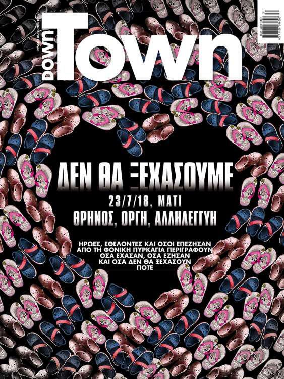 «Δεν θα ξεχάσουμε: 23/7/2018, Μάτι. Θρήνος, οργή, αλληλεγγύη», είναι ο κεντρικός τίτλος του περιοδικού που συνοδεύεται από φωτογραφία με παιδικές παντόφλες και crocs που παραπέμπουν σε αυτά που φορούν τα παιδιά στις παραλίες.