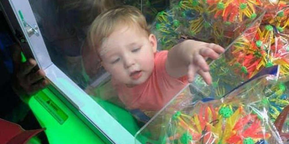 Ο μπόμπιρας μπήκε από εκεί που βγαίνουν τα παιχνίδια για να το πάρει και στην συνέχεια δεν μπορούσε να βγει με αποτέλεσμα να σημάνει συναγερμός και να κληθεί η πυροσβεστική για να το απεγκλωβίσει.
