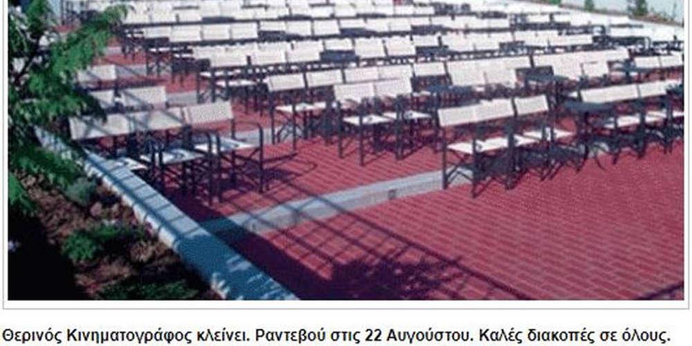Όπως όμως μετέδωσαν τα περισσότερα τοπικά sites της Καρδίτσας οι κάτοικοι της πόλης καθώς και οι ταξιδιώτες δεν θα μπορέσουν να χαρούν τις ταινίες τους κάτω από το καλοκαιρινό φεγγάρι μιας και το θερινό σινεμά θα είναι κλειστό μέχρι τις 22 Αυγούστου.