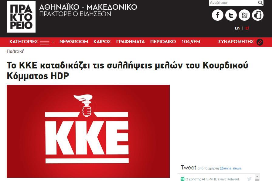Το πρακτορείο, που το τελευταίο διάστημα πηγαίνει από το ένα λάθος στο άλλο, θέλησε να δημοσιεύσει μια ανακοίνωση του ΚΚΕ σχετικά με τις συλλήψεις των στελεχών του φιλοκουρδικού στην Τουρκία.