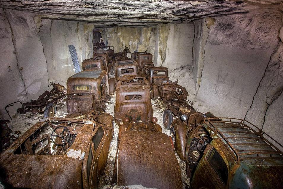 Εκατοντάδες αυτοκίνητα της περιόδου του Β’ Παγκοσμίου Πολέμου, είχαν παρκαριστεί στο λατομείο, ώστε να γλυτώσουν την επίταξη ή την καταστροφή από τις ναζιστικές δυνάμεις. Οι «ανασκαφείς» του μοναδικού ευρήματος δεν μπορούν να πιστέψουν αφενός πώς μπήκαν όλα αυτά τα αυτοκίνητα στο λατομείο και αφετέρου την τραγική ειρωνεία της αναπόφευκτης φθοράς.