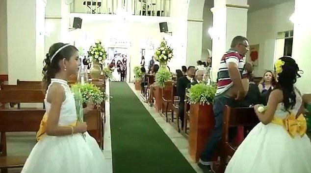 Στο κλιπ που κάνει τον γύρο του διαδικτύου, ένας εύσωμος άνδρας φαίνεται να βαδίζει πίσω από το ζευγάρι που διασχίζει τον διάδρομο της εκκλησίας για να φτάσει στο ιερό. Στη συνέχεια, ενώ ο γαμπρός και η νύφη εξαφανίζονται από το πλάνο, ο άνδρας πλησιάζει, εμφανώς ταραγμένος, τους καλεσμένους που κάθονται στη μία πλευρά, βγάζει ένα πιστόλι από το παντελόνι του και ανοίγει πυρ εναντίον τους!