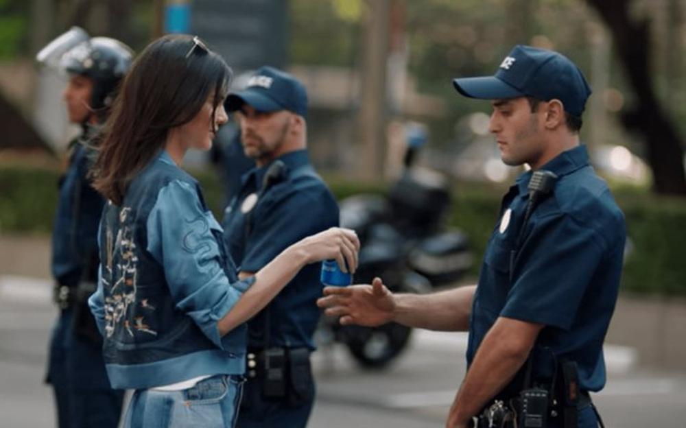 Το σημείο που προκάλεσε τις αντιδράσεις είναι αυτό που η Κένταλ προσφέρει το αναψυκτικό της στον αστυνομικό, καθώς αυτό θυμίζει το στιγμιότυπο που κυκλοφόρησε από την πορεία «Black Lives Matter», τότε που μία νεαρή γυναίκα στάθηκε ακίνητη μπροστά από τρεις πάνοπλους αστυνομικούς.
