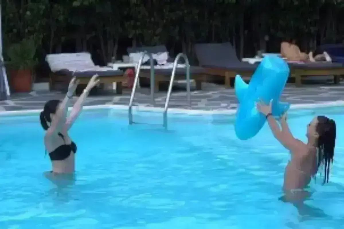 Όπως βλέπετε και εσείς, ενώ τα αγόρια και τα κορίτσια του κλαμπ απολαμβάνουν στιγμές χαλάρωσης στην πισίνα, ξαφνικά αντιλαμβάνονται ότι πρέπει να φύγουν από τον… παράδεισο και κουβαλώντας παιχνίδια, στρώματα και φορώντας τα μαγιό τους, λαμβάνουν θέσεις μάχης πίσω από τις μπάρες.
