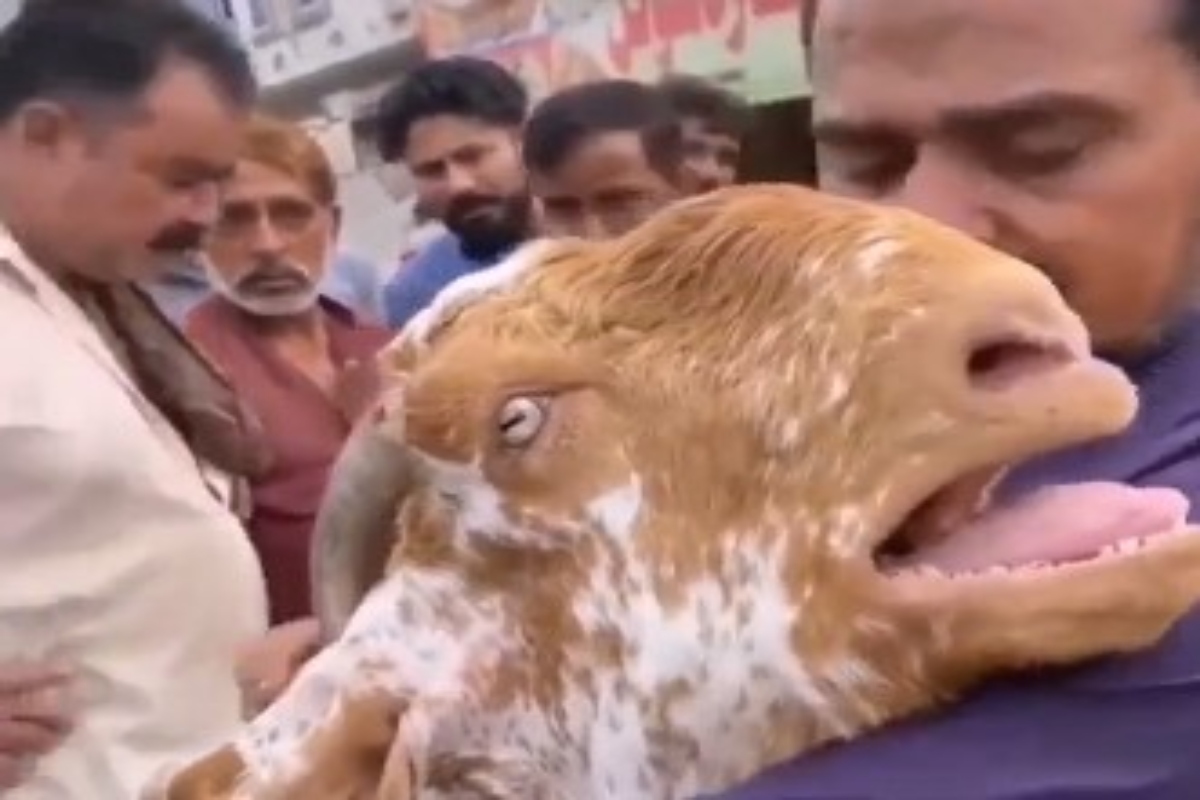 Στο βίντεο που έχει γίνει viral, η κατσίκα έχει αγκαλιάσει τον ιδιοκτήτη της και κλαίει πάνω του, με το πλήθος που είναι συγκεντρωμένο να παρακολουθεί σοκαρισμένο.