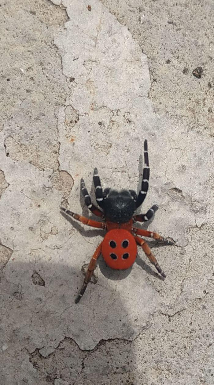 Πρόκειται για την αράχνη – πασχαλίτσα (Eresus Cinnaberinus), η ελληνική ονομασία της οποίας οφείλεται στο όμορφο κόκκινο σώμα της με τις μαύρες βούλες που παραπέμπει στο γνωστό ζουζούνι.