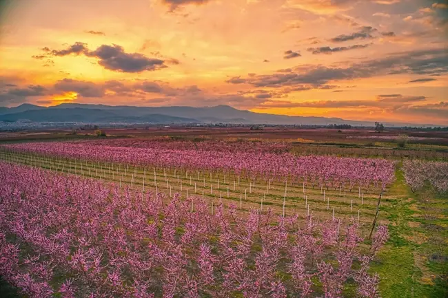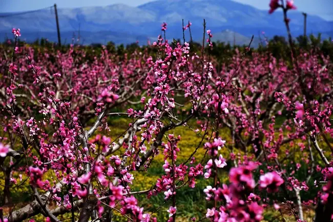 Έλληνες, κυρίως από την Κεντρική και Βόρεια Ελλάδα, αλλά και ξένοι επισκέπτες, δράττουν και φέτος της ευκαιρίας να δραπετεύσουν από την καθημερινότητά τους και να γίνουν και αυτοί έστω για λίγο, μέρος του ροζ πίνακα που δημιουργεί η μαγεία της φύσης στην περιοχή, με τις ανθισμένες ροδακινιές να εκτείνονται σε περισσότερα από 170.000 στρέμματα.
