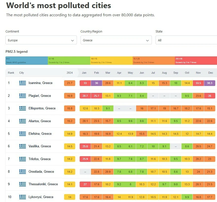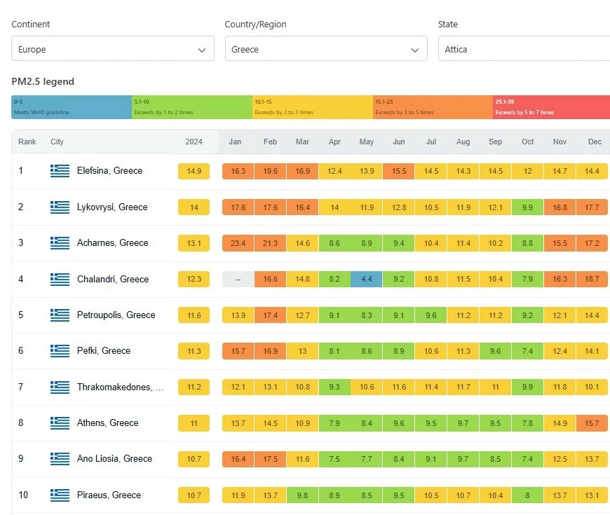 Οι 10 πιο μολυσμένες περιοχές στην Ελλάδα, σύμφωνα με την έκθεση της IQAir