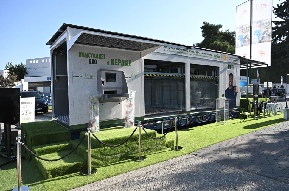 Πρόκειται για το Νέο Φωτοβολταϊκό Κινητό Πολυκέντρο Ανακύκλωσης, το πρώτο ενεργειακά αυτόνομο στον κόσμο, που λειτουργεί αποκλειστικά με ηλιακή ενέργεια και συστοιχία μπαταριών. Έχει σχεδιαστεί ώστε να καλύπτει ανάγκες περιοχών χωρίς μόνιμες υποδομές, όπως νησιά, παραλίες, φεστιβάλ και χώρους μαζικής εστίασης, δίνοντας τη δυνατότητα στους πολίτες να ανακυκλώνουν πλαστικά και μέταλλα επί τόπου.