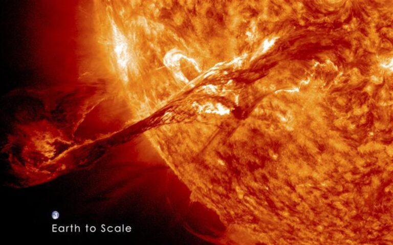 Ηλιακά σωματίδια που εκτοξεύτηκαν προκαλούν διαταραχές στο μαγνητικό πεδίο της γης, με αποτέλεσμα κάποιες φορές φαινόμενα όπως η εμφάνιση βόρειου σέλαος, η επιδείνωση των επικοινωνιών υψηλών συχνοτήτων, η υπερφόρτωση των δικτύων ηλεκτροδότησης και οι ανωμαλίες στις λειτουργίες δορυφόρων.