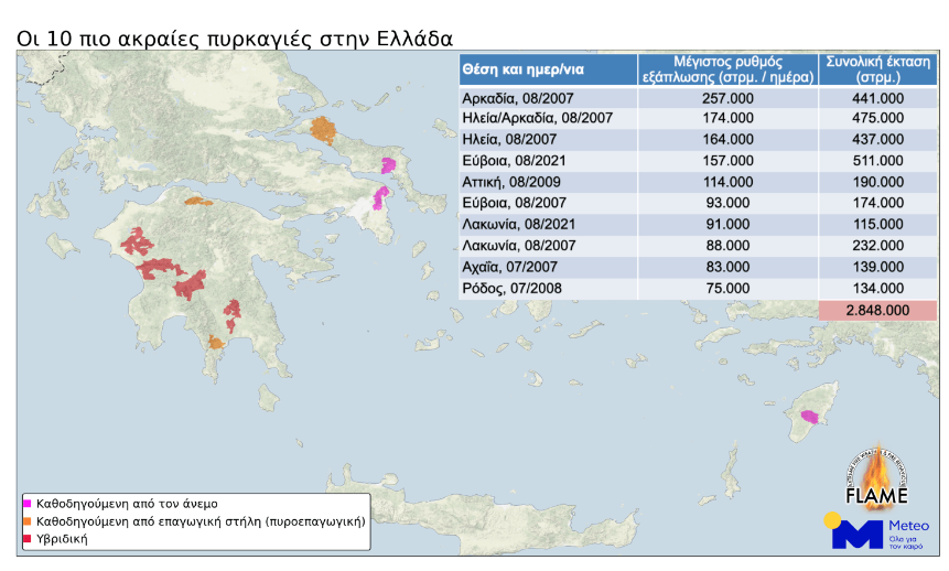 Τα συγκλονιστικά στοιχεία σχετικά με τις πυρκαγιές που εκδηλώθηκαν στην Ελλάδα κατέγραψε η πυρομετεωρολογική ομάδα FLAME του ΕΑΑ/ΜΕΤΕΟ και βασίζονται σε ευρήματα ανάλυσης δορυφορικών δεδομένων.