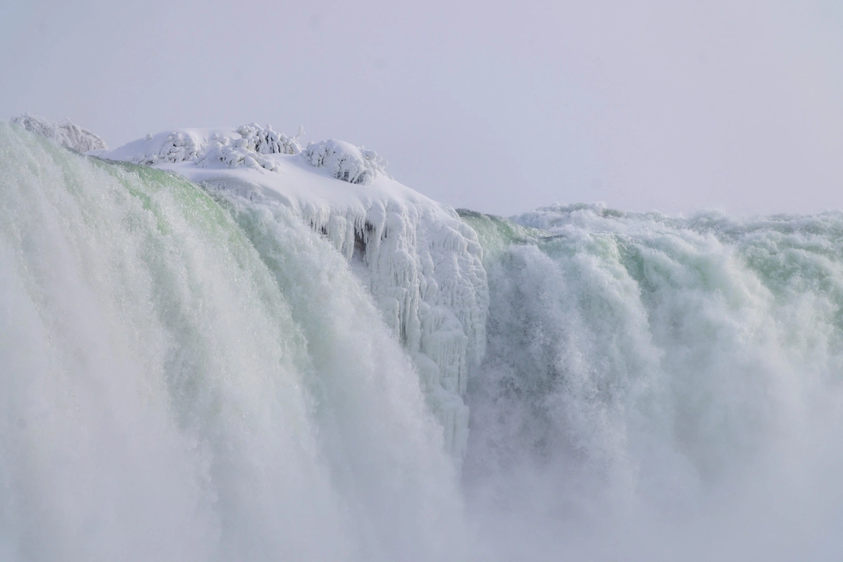 Ωστόσο, παρά τον πάγο, οι καταρράκτες δεν σταματούν ποτέ εντελώς να ρέουν. Ο πάγος σχηματίζεται κατά μήκος του ποταμού και των γύρω βράχων, κάνοντας το νερό να φαίνεται σαν να έχει παγώσει εντελώς.
