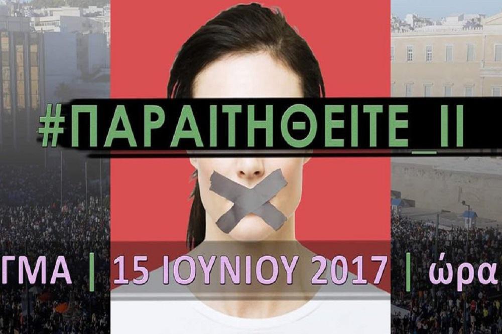Έναν χρόνο μετά, Πέμπτη 15 Ιουνίου 2017 στις 20:00 το βράδυ πάμε ΟΛΟΙ στο ΣΥΝΤΑΓΜΑ για να βροντοφωνάξουμε : #ΠΑΡΑΙΤΗΘΕΙΤΕ.