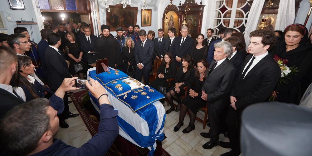 Ο πρόεδρος της ΝΔ Κυριάκος Μητσοτάκης με τις αδερφές του Ντόρα, Κατερίνα και Αλεξάνδρα, τα εγγόνια του εκλιπόντος, όλοι οι κοντινοί συγγενείς, οι στενοί συνεργάτες, φίλοι και γείτονες του Κωνσταντίνου Μητσοτάκη τον συνόδευσαν μέχρι το εσωτερικό του ναού.
