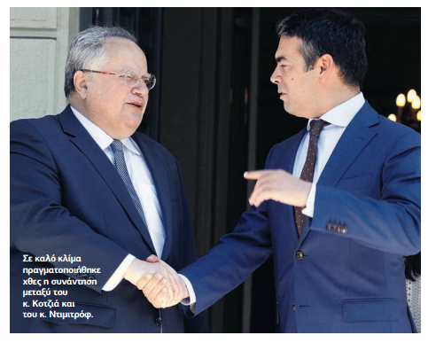 Επίσης, απέρριψε τους ισχυρισμούς, σύμφωνα με τους οποίους η αιτία που το γειτονικό κράτος βρίσκεται σε πολιτική αστάθεια είναι η άρνηση της Ελλάδας στη Σύνοδο Κορυφής του ΝΑΤΟ το 2008 να ενταχθούν τα Σκόπια στον Οργανισμό. Η κρίση στη γείτονα, εξήγησε, «δεν οφείλεται στην απόφαση του Βουκουρεστίου, διότι τότε θα έπρεπε να είχε προκληθεί το 2008. Αντίθετα, ένας λόγος που οδήγησε στην κρίση ήταν ότι η προηγούμενη κυβέρνηση είχε “εκπαιδευτεί” να μη συμβιβάζεται, να μη συναινεί και να κάνει το μεγάλο λάθος να μετατρέψει το πρόβλημα της ονομασίας από γεωγραφικό σε πρόβλημα ταυτότητας». Ο κ. Κοτζιάς επέκρινε πολλούς Ευρωπαίους που «χάιδεψαν» επί πολλά έτη τις κυβερνήσεις του πρώην πρωθυπουργού Νικόλα Γκρουέφσκι. Και κατέληξε: «Εμείς θέλουμε η ΠΓΔΜ να γίνει μέλος, εφόσον εκείνη το επιθυμεί βέβαια, και της Ε.Ε. και του ΝΑΤΟ. Αυτό που μπορεί να γίνει πολύ απλά είναι να βρούμε μια συμβιβαστική λύση στο ονοματολογικό και αμέσως μετά να πάμε στον ΟΗΕ να υπογράψουμε τη νέα μας συμφωνία, να πάμε στις Βρυξέλλες και να το ανακοινώσουμε στους Διεθνείς Οργανισμούς που βρίσκονται εκεί». Εξέφρασε, τέλος, την ελπίδα «να βρούμε ένα δρόμο ορθού και επωφελούς για τις δύο πλευρές συμβιβασμού και να μπορέσουμε να αναπτύξουμε παραπέρα τις σχέσεις μας».