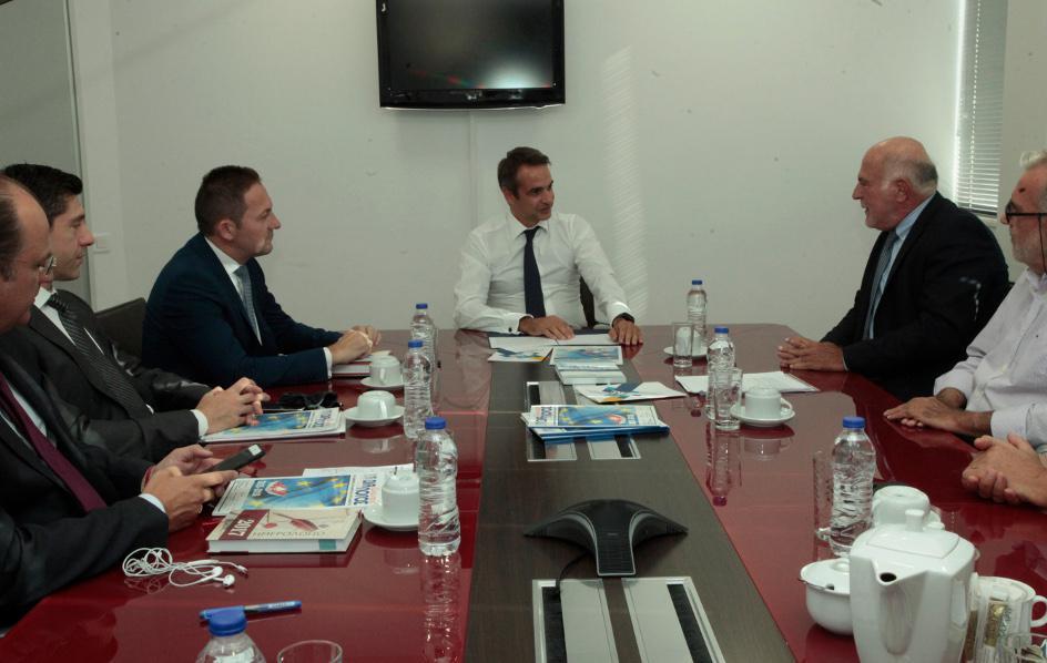 Η συνάντηση πραγματοποιήθηκε στο πλαίσιο των επαφών που κάνει ο πρόεδρος της ΝΔ ενόψει της ΔΕΘ και ενός, όπως είπε, εξαιρετικά διευρυμένου κοινωνικού διαλόγου.
