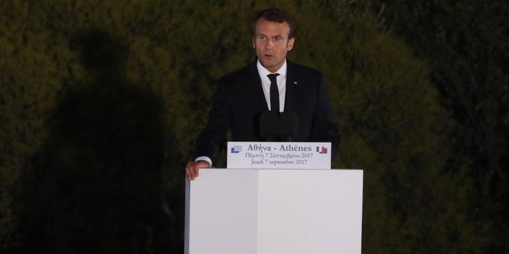 “Σε αυτό το μέρος οι Αθηναίοι επινόησαν την Δημοκρατία. Το γεγονός ότι παίρνω τον λόγο εδώ στο ίδιο μέρος ενώπιον σας, το ξέρω, είναι ένα πολύ μεγάλο προνόμιο,. Γι’ αυτό ευχαριστώ θερμά την κυβέρνηση και τις Αρχές αλλά ιδιαίτερα τον πρωθυπουργό Αλέξη Τσίπρα που με κάλεσε να μιλήσω από εδώ” είπε στα ελληνικά ο Εμανουέλ Μακρόν!