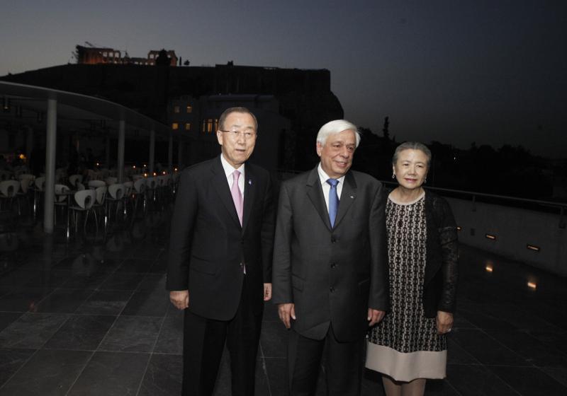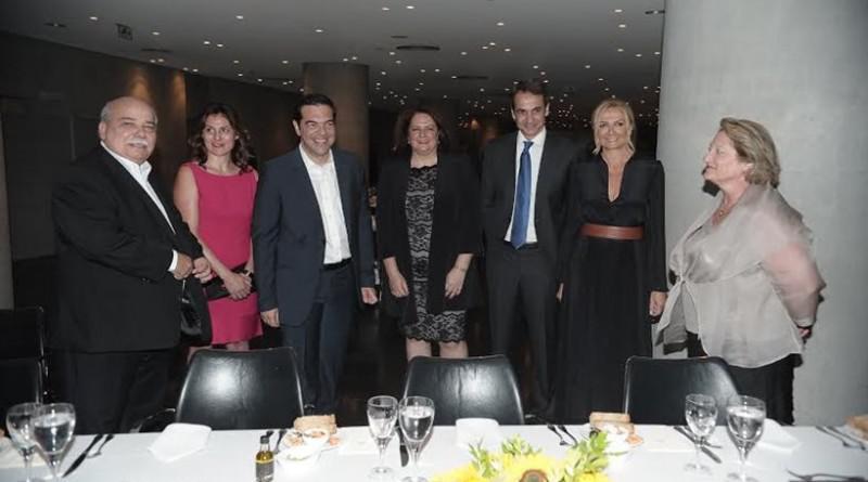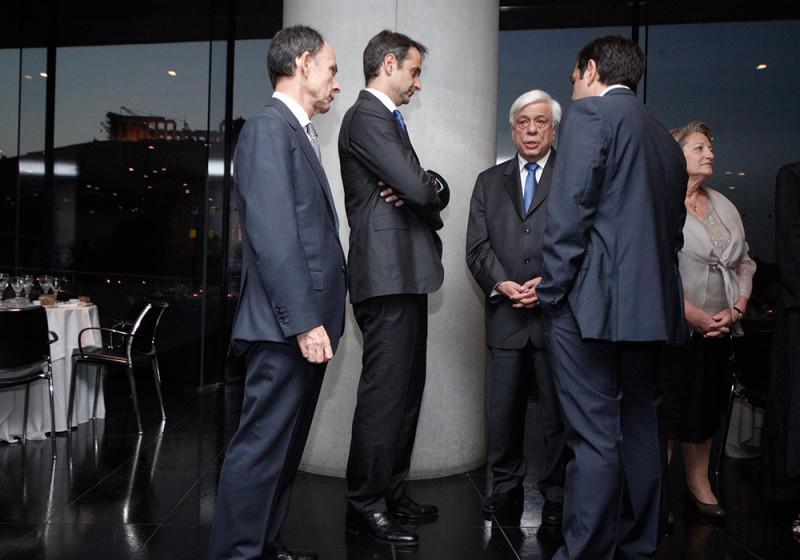 Κάτω από την επιβλητική Ακρόπολη, συναντήθηκαν ο Αλέξης Τσίπρας και ο Κυριάκος Μητσοτάκης μετά συζύγων στο δείπνο του προέδρου της Δημοκρατίας προς τιμή του Μπαν Κι Μουν.