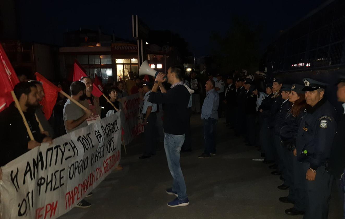 Οι διαμαρτυρόμενοι κρατώντας πανό, δεν κατάφεραν να προσεγγίσουν τον χώρο του ξενοδοχείου στο οποίο έφτασε ο πρωθυπουργός το μεσημέρι.