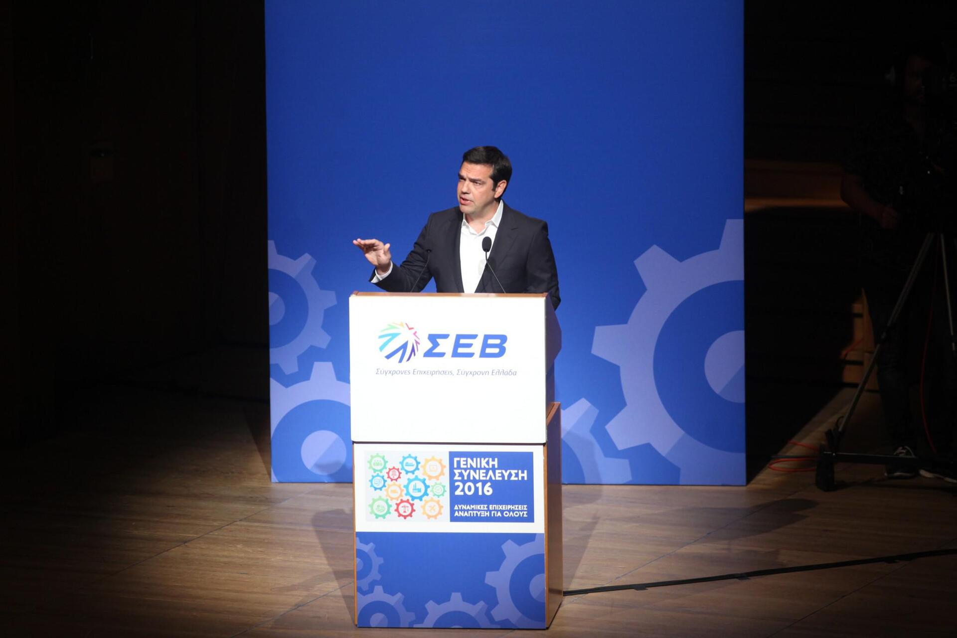 Πρόσκληση στο σύνολο των κοινωνικών φορέων «να συμμετάσχουν σε έναν γόνιμο και δημιουργικό διάλογο για την βελτίωση και την αποκατάσταση των εργασιακών σχέσεων, την επαναφορά των συλλογικών διαπραγματεύσεων, τη μετάβαση σε ένα νέο παραγωγικό μοντέλο, που δε μπορεί παρά να βασίζεται στον αμοιβαίο σεβασμό του ρόλου των παραγωγικών φορέων», απηύθυνε ο Αλέξης Τσίπρας, από το βήμα της Γενικής Συνέλευσης του ΣΕΒ, παρουσία του προέδρου της Ευρωπαϊκής Επιτροπής Ζαν Κλοντ Γιούνκερ.