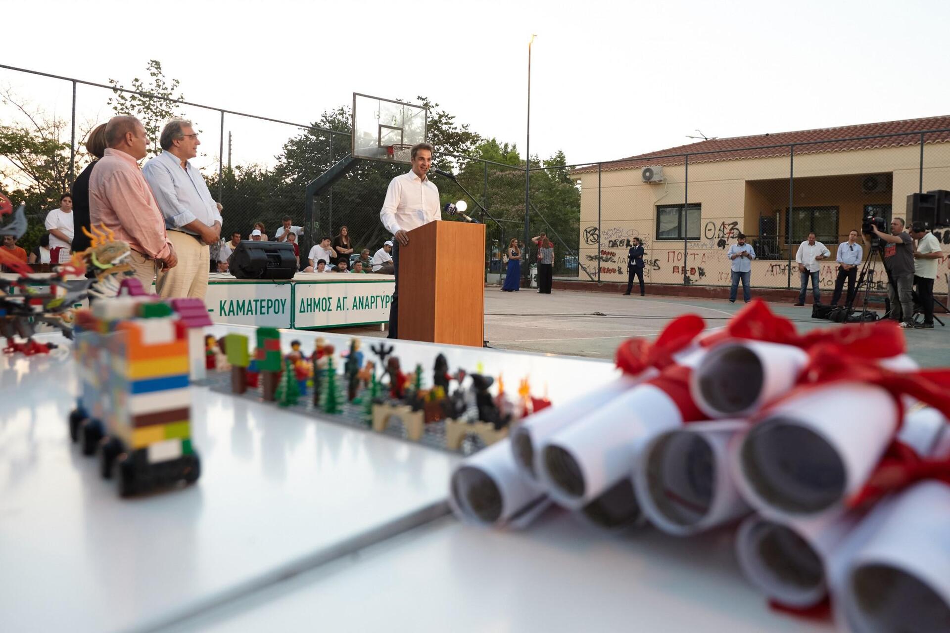 Στον σύντομο χαιρετισμό του, ο πρόεδρος της Νέας Δημοκρατίας εμφανίστηκε ιδιαίτερα συγκινημένος και έδωσε τα συγχαρητήρια του σε όλους εκείνους που, όπως είπε, “αφιερώνουν πολύτιμες ώρες, αλλά κυρίως δίνουν ένα περίσσευμα καρδιάς και ψυχής για να βοηθήσουν και να υποστηρίξουν αυτά τα παιδιά, που έχουν τόσο ιδιαίτερα χαρακτηριστικά και τόσο ιδιαίτερες δεξιότητες”.