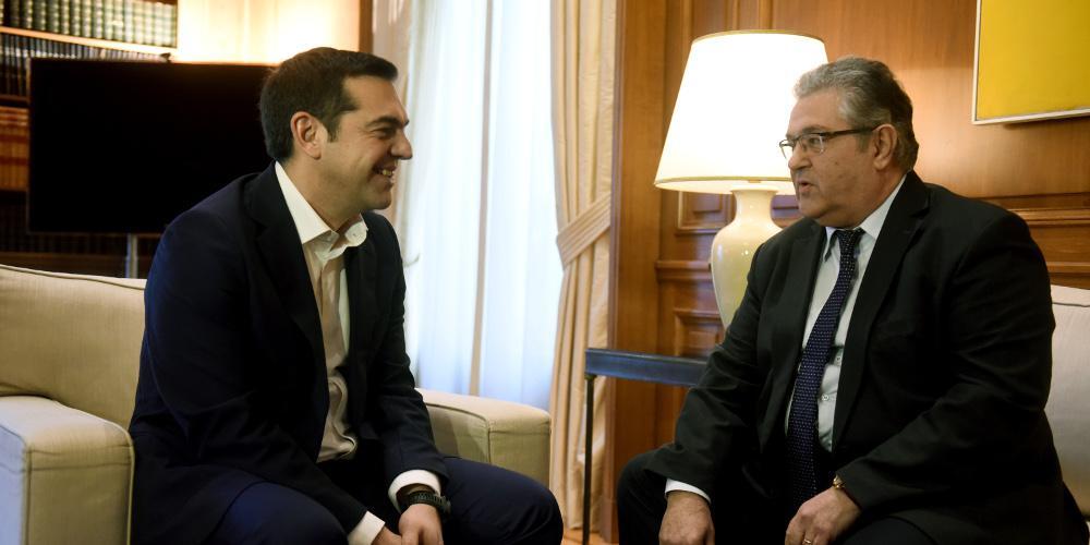 Ο κ. Κουτσούμπας χρειάστηκε να περιμένει λίγο καθώς έφτασε στο Μαξίμου λίγο πριν ολοκληρωθεί η συνάντηση του πρωθυπουργού με την κυρία Γεννηματά.