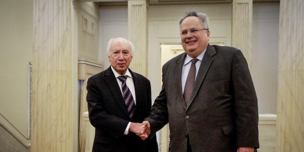 Πριν, και συγκεκριμένα στις 10:30 ο Μάθιου Νίμιτσς συναντήθηκε με τον αρμόδιο τομεάρχη Εξωτερικών της Νέας Δημοκρατίας, Γιώργο Κουμουτσάκο. Εντός του Φεβρουαρίου η κυβέρνηση θα καταθέσει ένα σχέδιο συμφώνου στην πλευρά των Σκοπίων, δήλωσε χθες στην ΕΡΤ, και στην «Επόμενη Μέρα», ο Νίκος Κοτζιάς και έθεσε ως προϋπόθεση την αλλαγή του Συντάγματος της γείτονος, ενώ αποσαφήνισε ότι για την ελληνική πλευρά έχει μεγάλη σημασία η σύνθετη λέξη της ονομασίας που θα συμφωνηθεί, να είναι στη σλαβική διάλεκτο και να μένει αμετάφραστη.