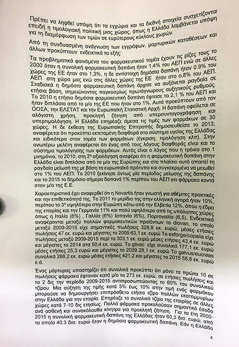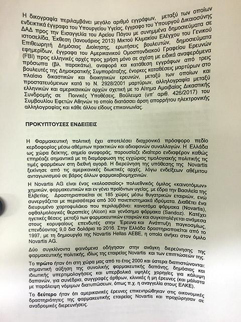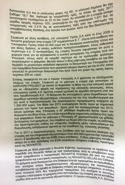 Μιλώντας για την υπόθεση είπε: «Στα χρόνια του μνημονίου, παίρνει τις διαστάσεις ύβρεως η κατασπάθιση και η κατάχρηση δημοσίου χρήματος, ύβρις απέναντι σε κάθε πολίτη που είδε τα μνημόνια να ρημάζουν τη ζωή του και την ζωή των παιδιών του. Από τις υπερκοστολογήσεις και τις μίζες στα εξοπλιστικά μέχρι τις φαρμακευτικές δαπάνες, τα έργα και τις προμήθειες του Δημοσίου, κανείς δεν ξέρει πόσο στοίχισε στη χώρα ο πλήρης εκφυλισμός της πολιτικής ελίτ. Μόνο για την υπόθεση της Novartis, το κόστος είναι αρκετών δισ. ευρώ, μόνο από την υπερκοστολόγηση φαρμάκων για το 2002-2010 η ζημιά για το Δημόσιο είναι 23 δισ. δηλαδή ένα μνημόνιο σχεδόν, πάνω από το 10% του ΑΕΠ. Αυτά τα χρήματα έλειψαν από τα ταμεία των ασφαλισμένων και οδήγησαν το ασφαλιστικό μας σύστημα στα βράχια. Αν αυτά τα 23 δισ είχαν μείνει στα ταμεία, ίσως να είχαμε αποφύγει τα μνημόνια γενικά», εκτίμησε ο πρωθυπουργός και συνέχισε σε υψηλούς τόνους: «Το πιο ανήθικο είναι ότι το πάρτι συνεχίστηκε και μετά, την ώρα που έκοβαν μισθούς και επέβαλαν φόρους, φρόντιζαν να εξυπηρετούν με το αζημίωτο τους δικούς τους επιχειρηματίες. Σήμερα ξεμπερδεύουμε με την χυδαιότητα του «μαζί τα φάγαμε», δεν τα φάγαμε μαζί, δεν είμαστε όλοι ίδιοι, ξέρουμε ποιοι έχουν την πολιτική ευθύνη».