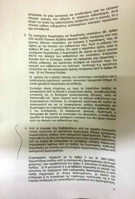 Στην συνέχεια επεσήμανε ότι η διερεύνηση της υπόθεσης θα γίνει «χωρίς κυνήγι μαγισσών, χωρίς λαϊκά δικαστήρια αλλά με θάρρος και συναίσθηση αλλά και της εθνικής ευθύνης. Είναι ξένος ο πολιτικός στόχος να εξοντώσουμε πολιτικούς αντιπάλους. Δεν θα τρομάξουμε από τις κραυγές των πολιτικών μας αντιπάλων, δεν θα συγκαλύψουμε, δεν θα υπολογίσουμε απειλές και εκβιασμούς . Εμείς έχουμε ακόμα πιο δυνατούς συμμάχους: την αρετή, την αλήθεια και την απαίτηση της κοινωνίας όσο και αν κάποιοι επιμένουν να μιλούν για σκευωρίες. Με αυτούς τους συμμάχους θα συνεχίσουμε να πορευόμαστε όσο κι αν κάποιοι επιμένουν να προσβάλλουν την ίδια τη Δικαιοσύνη και τους εισαγγελικούς λειτουργούς και να μιλούν για κουκουλοφόρους μάρτυρες, εμείς δεν θα κάνουμε βήμα πίσω και θα έχουμε μαζί μας την ελληνική κοινωνία – είναι άλλωστε ένας από τους λόγους που μας εμπιστεύτηκε πριν από τρία χρόνια. Γιατί μόνο εμείς μπορούμε να δικαιώσουμε τις θυσίες της κοινωνίας».