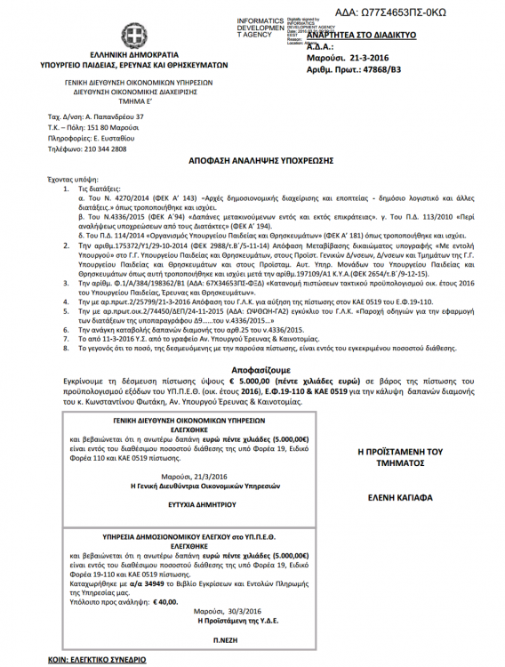Ουδέποτε έχω λάβει από το Δημόσιο οποιοδήποτε ποσό για το ενοίκιο ή τη διαμονή μου στην Αθήνα. Ως μόνιμος κάτοικος Ηρακλείου Κρήτης, στις αρχές του 2016 είχα κάνει αίτηση για ενδεχόμενη κάλυψη δαπανών διαμονής στην Αθήνα ύψους έως 5000€ ετησίως. Η σχετική, όμως, δέσμευση ουδέποτε χρησιμοποιήθηκε καθώς το ζήτημα της διαμονής μου στην Αθήνα διευθετήθηκε άμεσα και με ιδίους πόρους σε οικία της οποίας διατηρώ την επικαρπία.