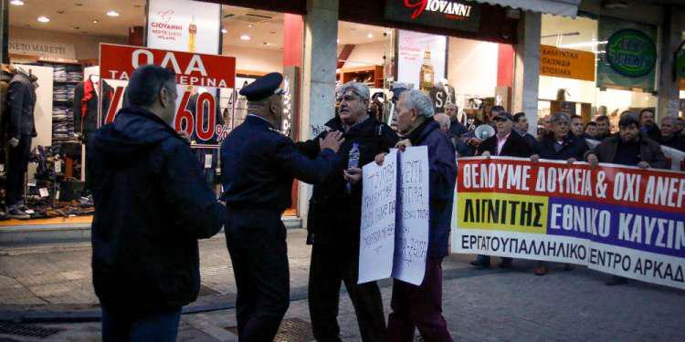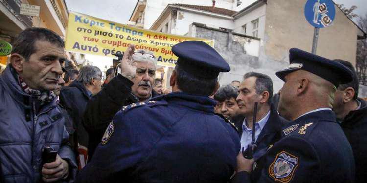Εργαζόμενοι είχαν συγκεντρωθεί στην περιοχή με σκοπό να φτάσουν στο συνεδριακό κέντρο όπου θα μιλήσει ο Τσίπρας για να διαμαρτυρηθούν απωθήθηκαν από τα ΜΑΤ.