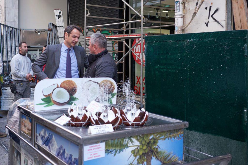 Ο πρόεδρος της ΝΔ συνομίλησε με περαστικούς αλλά και ιδιοκτήτες καταστημάτων στον εμπορικό δρόμο της Αθήνας, μετά από την επίθεση και τις ζημιές που προκλήθηκαν σε καταστήματα από κουκουλοφόρους το βράδυ της Τετάρτης (28.02.2018). Ο Κυριάκος Μητσοτάκης αναφέρθηκε στο περιστατικό μιλώντας για «ανοχή της κυβέρνησης στα φαινόμενα ανομίας».