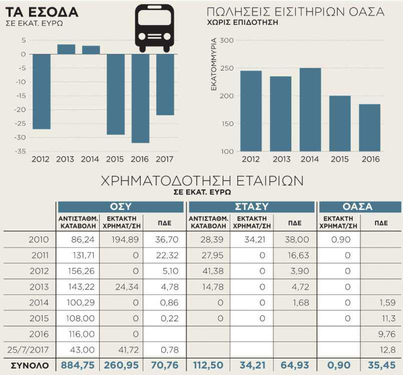 - 242,5 εκατ. ευρώ ήταν το μέσο ετήσιο έσοδο των αστικών συγκοινωνιών από τις πωλήσεις εισιτηρίων, κατά την τριετία 2012 – 2014.