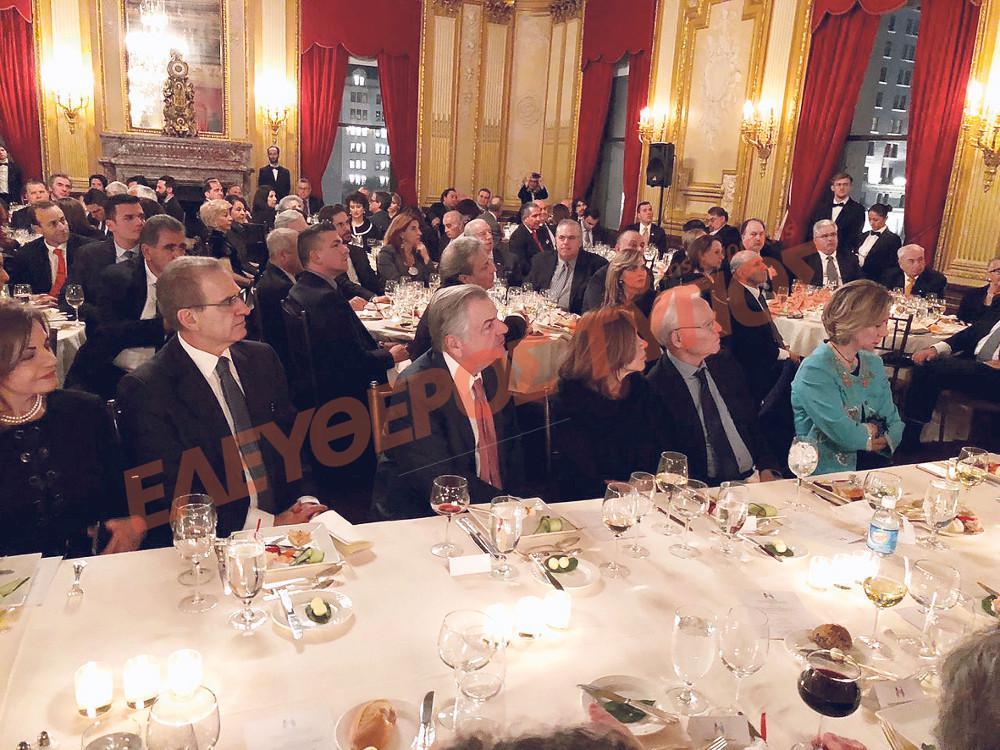 Το ένδυμα εκτός από επίσημο ήταν και βαρύ καθώς η Νέα Υόρκη παγώνει τις τελευταίες ημέρες στους μηδέν βαθμούς. Ο προθάλαμος όπου σερβίρονταν ποτά και finger food είχε ήδη γεμίσει ασφυκτικά όταν ο Κυριάκος Μητσοτάκης βγήκε από το ασανσέρ του τρίτου ορόφου. Τότε όλοι συγκεντρώθηκαν γύρω του για να τον χαιρετήσουν και να φωτογραφηθούν μαζί του, αφού γνώριζαν πως πετούσε το ίδιο βράδυ για την Αθήνα και ο χρόνος του ήταν περιορισμένος. Κατά την είσοδό του τον συνόδευε μόνο το ζεύγος Κατσιματίδη καθώς οι έτεροι οικοδεσπότες Μάικλ και Ράμπιν Ψαρός, είχαν κάποιο σοβαρό απρόοπτο και δεν κατάφεραν να παρευρεθούν.